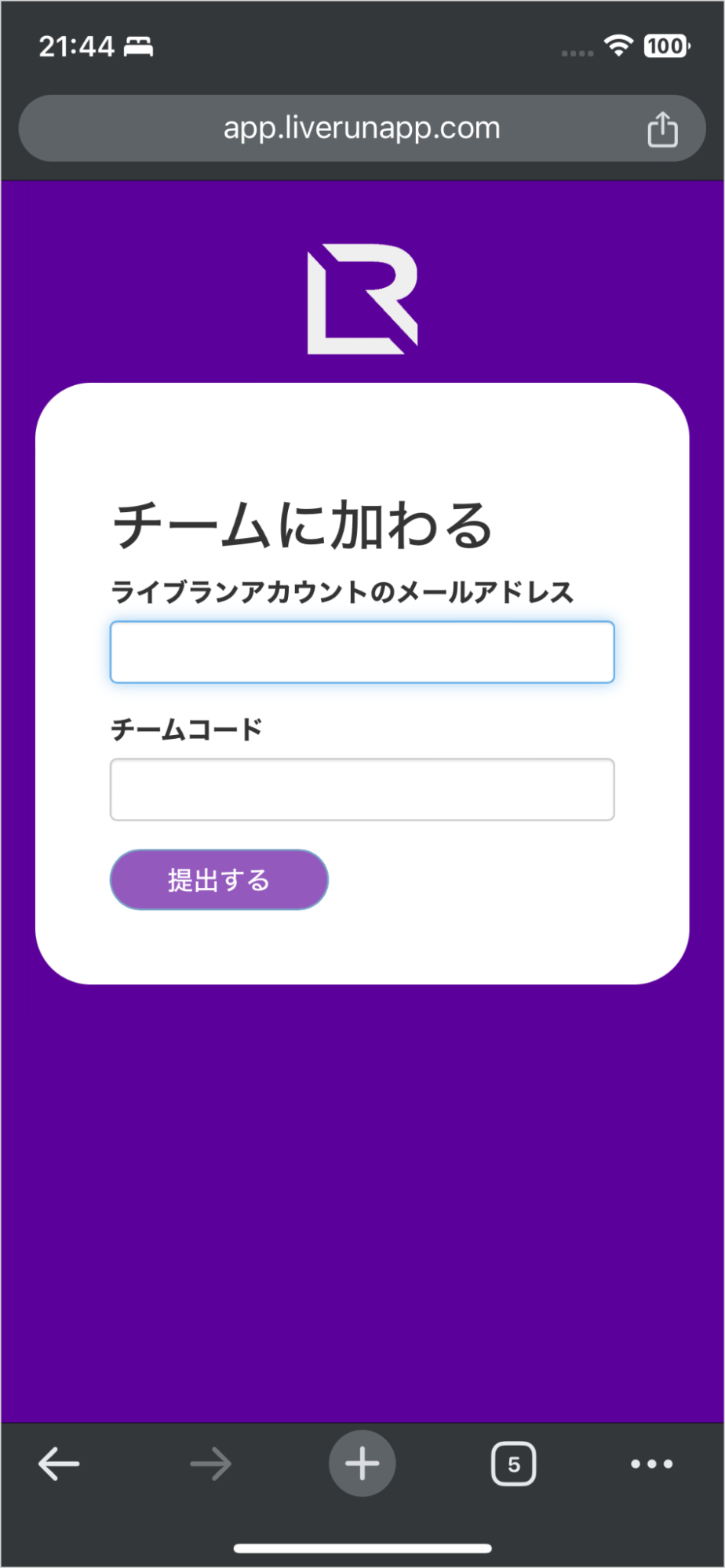 3-2.同メールに含まれているチームコード、LIVERUNで登録したメールアドレスを入力。