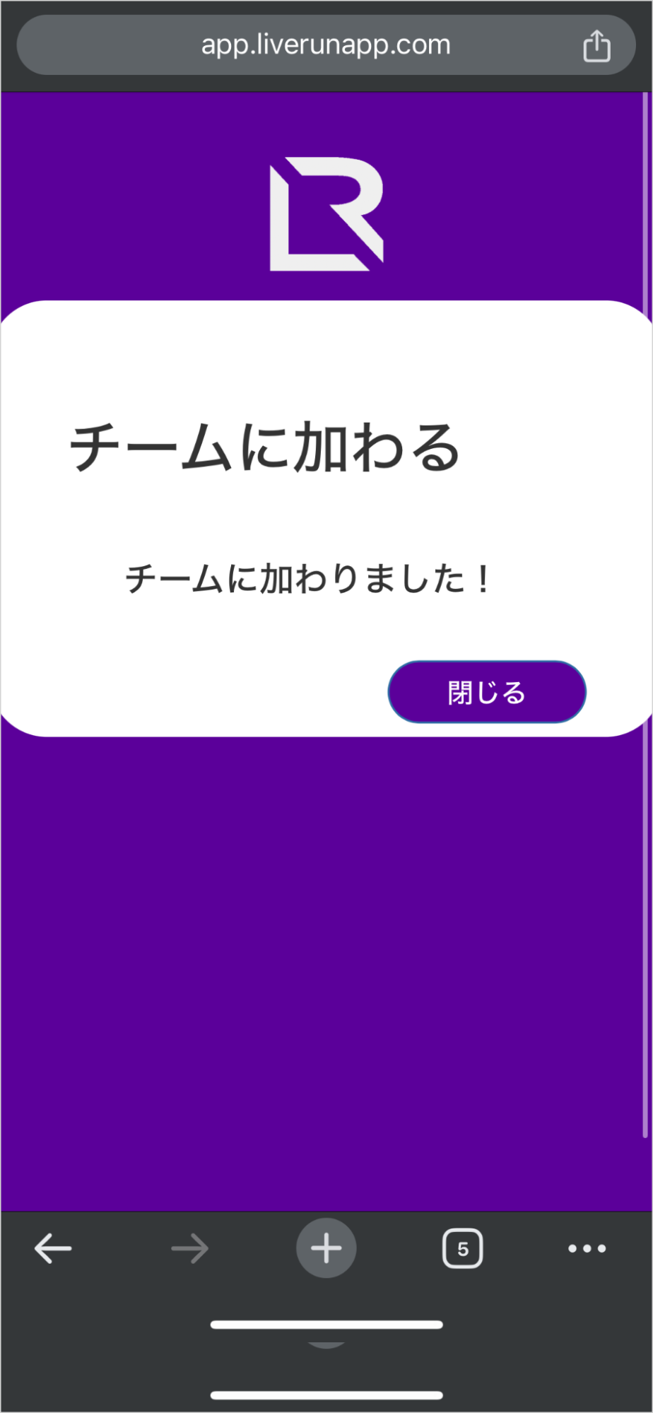 4.LIVERUN特設サイトにアクセスしてチームに加入。