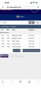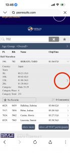 結果の詳細が表示されます。さらに完走証をダウンロードする場合は右にある「>」マークを選択
